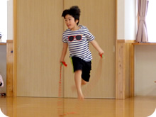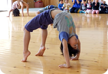 生のピアノ音に合わせて、いろんな運動をし、背骨や足腰、手足の指、腕の力をつけ、バランス感覚を養います。
