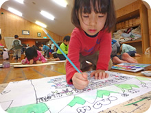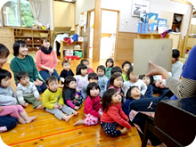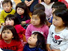 絵本や紙芝居、童話の読み聞かせを毎日行っています。受身だけのテレビは置いていません。保育士の生の声で、子どもたちは集中し、イメージを膨らませます。