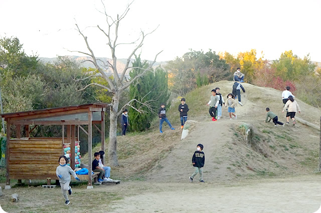 児童クラブ「風ん子ハウス」の隣に、子育て支援センター「どんぐり」があります。「どんぐり」は、おうちで子育てするお母さん達を応援する施設です。お茶を飲みながらお話したり、遊んだり、色々な行事もあります。